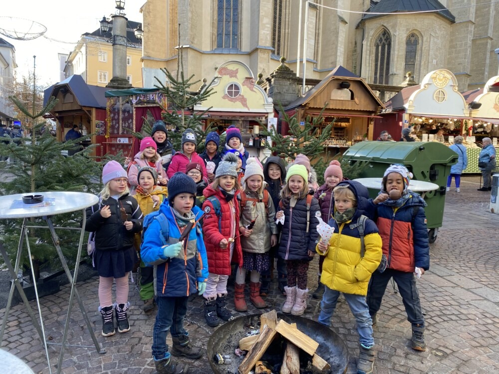 Anschließend besuchten die Schülerinnen und Schüler den Christkindlmarkt. Ein besonderes Highlight war, dass die Kinder sich Schokofrüchte oder Maroni kaufen durften. Zum Abschluss des ereignisreichen Tages unternahm die Gruppe noch einen kurzen Spaziergang, bevor es zurück zur Schule ging.