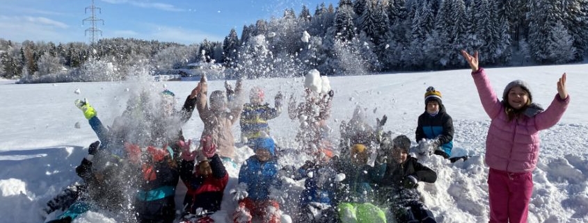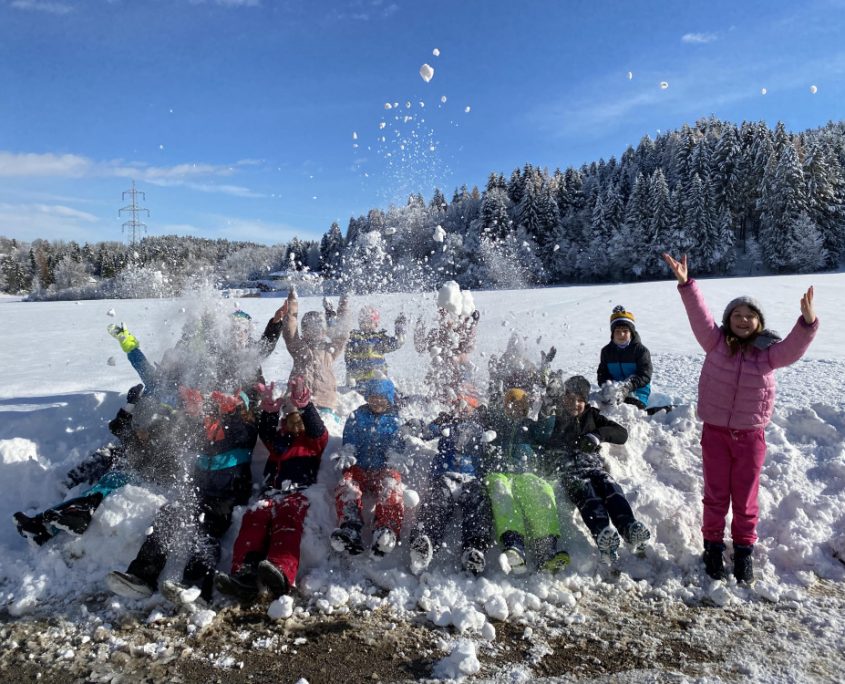 Endlich ist er da – der erste Schnee!! Wir haben gleich das tolle Wetter genutzt und die Turnstunde nach draußen verlegt! Die 2. Klassen hatten jede Menge Spaß!!