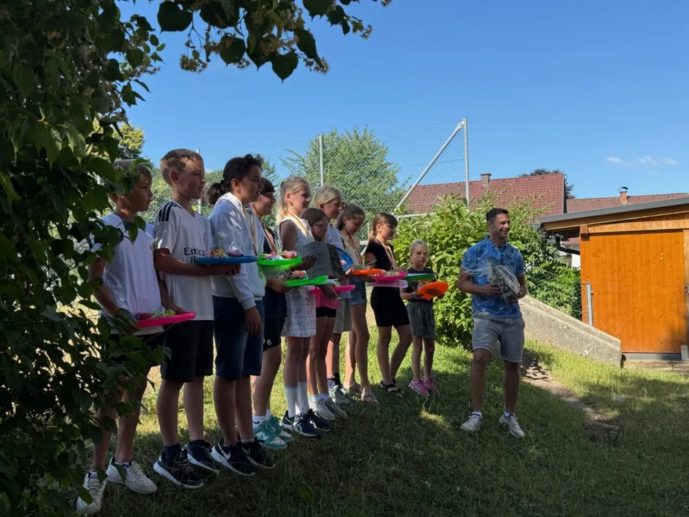 Nach dem großartigen Erfolg bei den Leichtathletikmeisterschaften gab es eine kleine, aber feierliche Siegerehrung im Pausenhof. Unter Applaus der gesamten Volksschule wurden unsere sportlichen Talente noch einmal gefeiert.
