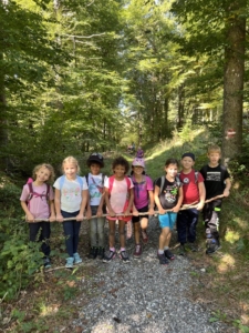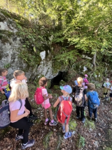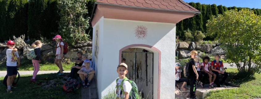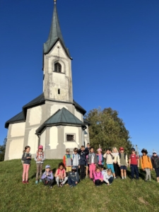 Bei herrlichem Herbstwetter begaben sich die 2. Klassen auf Wanderschaft. Vorbei an der Pogöriacher Kirche ging es erst recht gemütlich, dann aber steil bergauf zur Kirche am Kanzianiberg. Die Jause schmeckte wunderbar und gab Kraft für den Weg Richtung Burgruine. Über den Trail ging es über Wurzeln und Steine flott hinunter zum Reitstall. Nicht nur dort war Mut gefragt, zum Glück haben wir den Bären in seiner Höhle nicht geweckt und sind leise vorbeigeschlichen!
