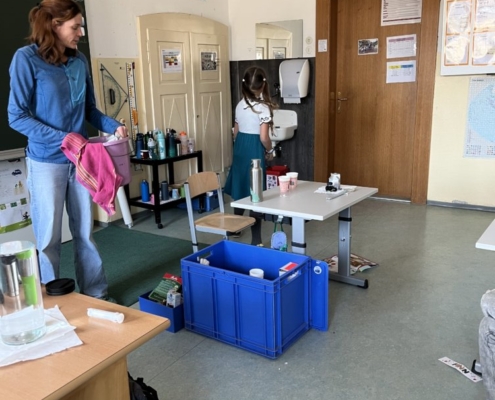 Der erste Teil des insgesamt 4-tägigen Projektes fand indoor statt. Die Meeresbiologin Frau Sigrid Werth besuchte die Schülerinnen und Schüler mit ihrem Experimentierkoffer. Vom Wasserkreislauf, über Aggregatzustände und der Entstehung des Bermudadreieckes bis zu spannenden Experimenten war alles dabei.