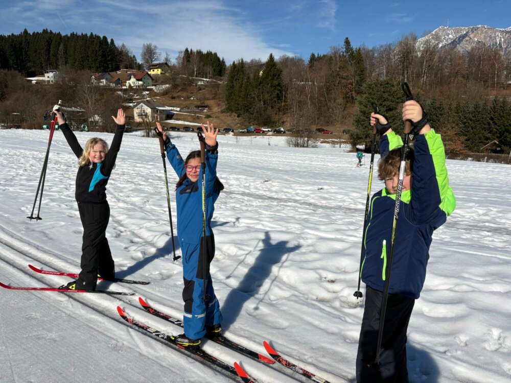Am Mittwoch, den 25. Februar verbrachte die 2.b Klasse einen herrlichen Tag am Dreiländereck. Dank der tollen Unterstützung der Eltern konnten die Kinder am Vormittag bei herrlichem Wetter und perfekten Pisten und Loipen Schi fahren und langlaufen. Möglich gemacht hat das auch Herr Andreas Blüm, der mit seinem Team dafür gesorgt hat, dass zu Mittag alle vereint am  Berg mit der Sonne um die Wette strahlten.