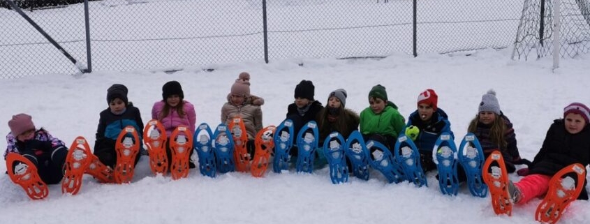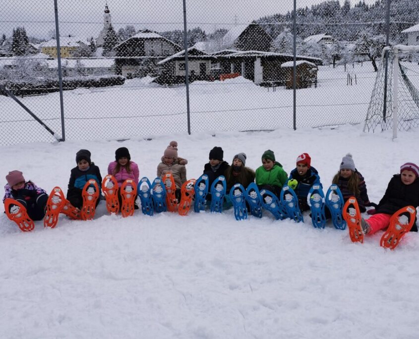 Groß war die Freude bei den Kindern und Lehrerinnen nach dem Schneefall! Nichts wie raus ins Vergnügen! Z novimi krpljami smo se v snegu zabavali!